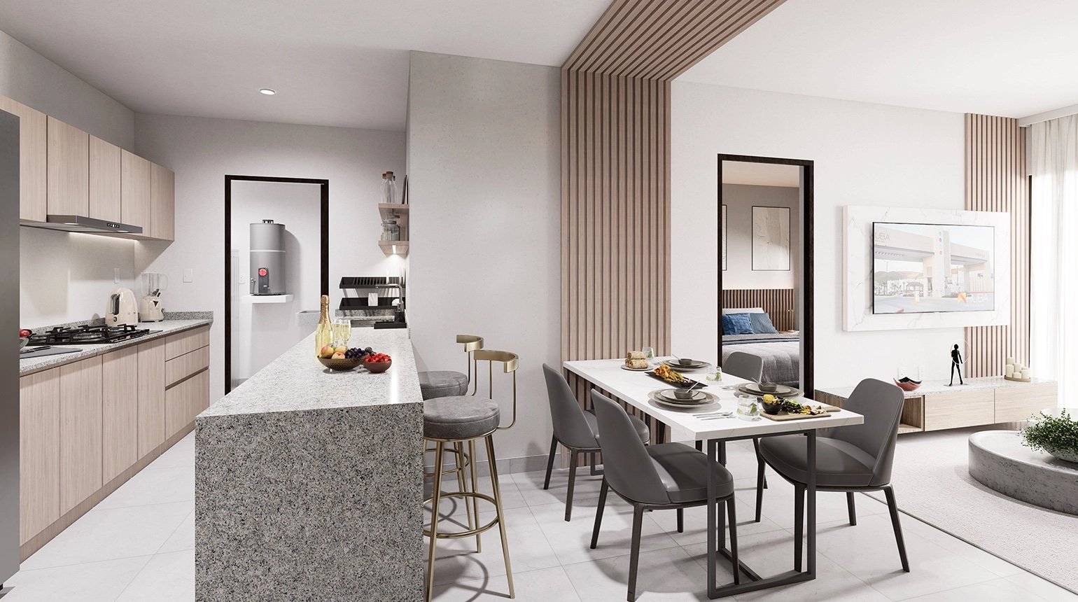 - Diseño funcional y luminoso: Departamentos de 2 recámaras, con espacios abiertos, excelente distribución y materiales duraderos.
